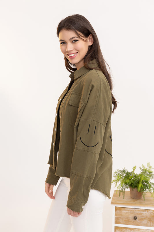 Chemise oversize femme smiley brodé – Chemise tendance loose chic