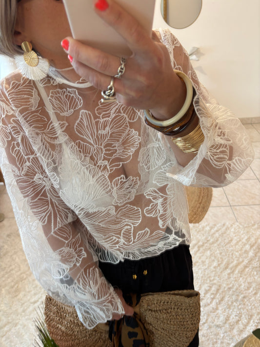 Blouse en dentelle avec dos ouvert EMIRA-BLANC