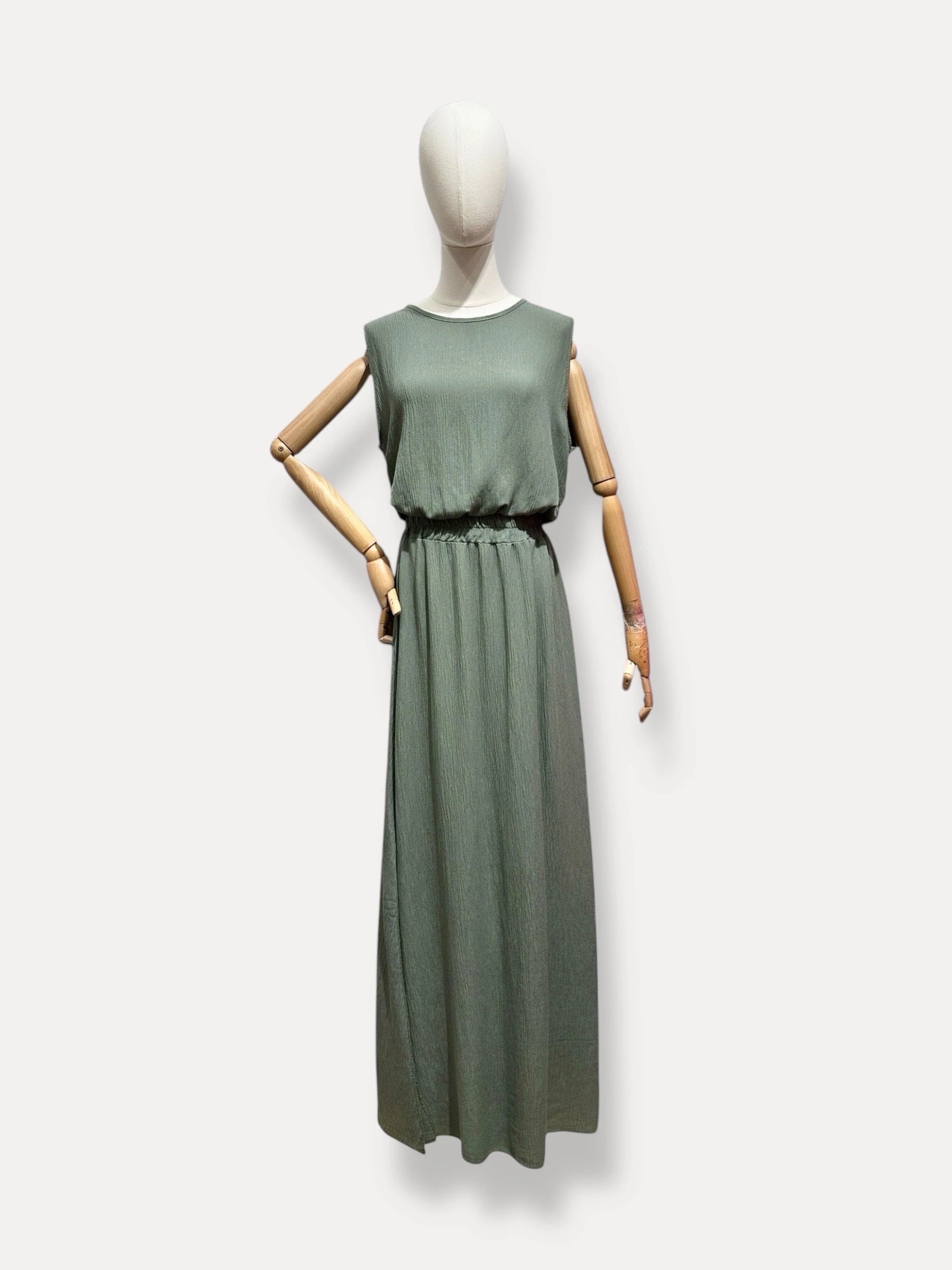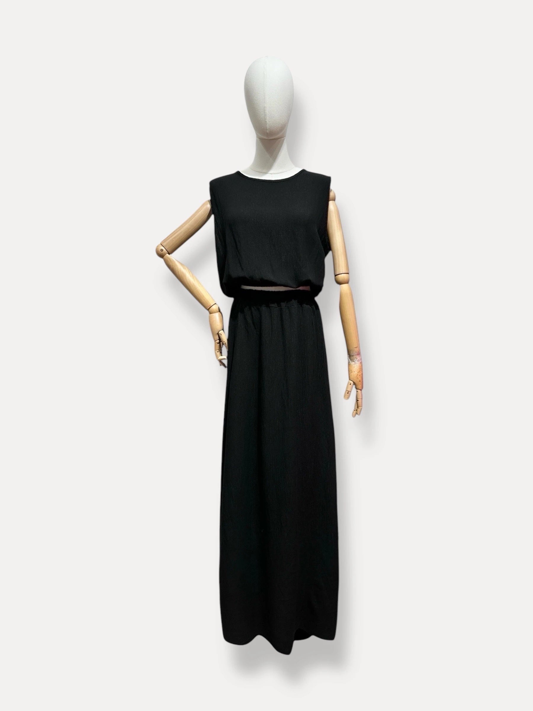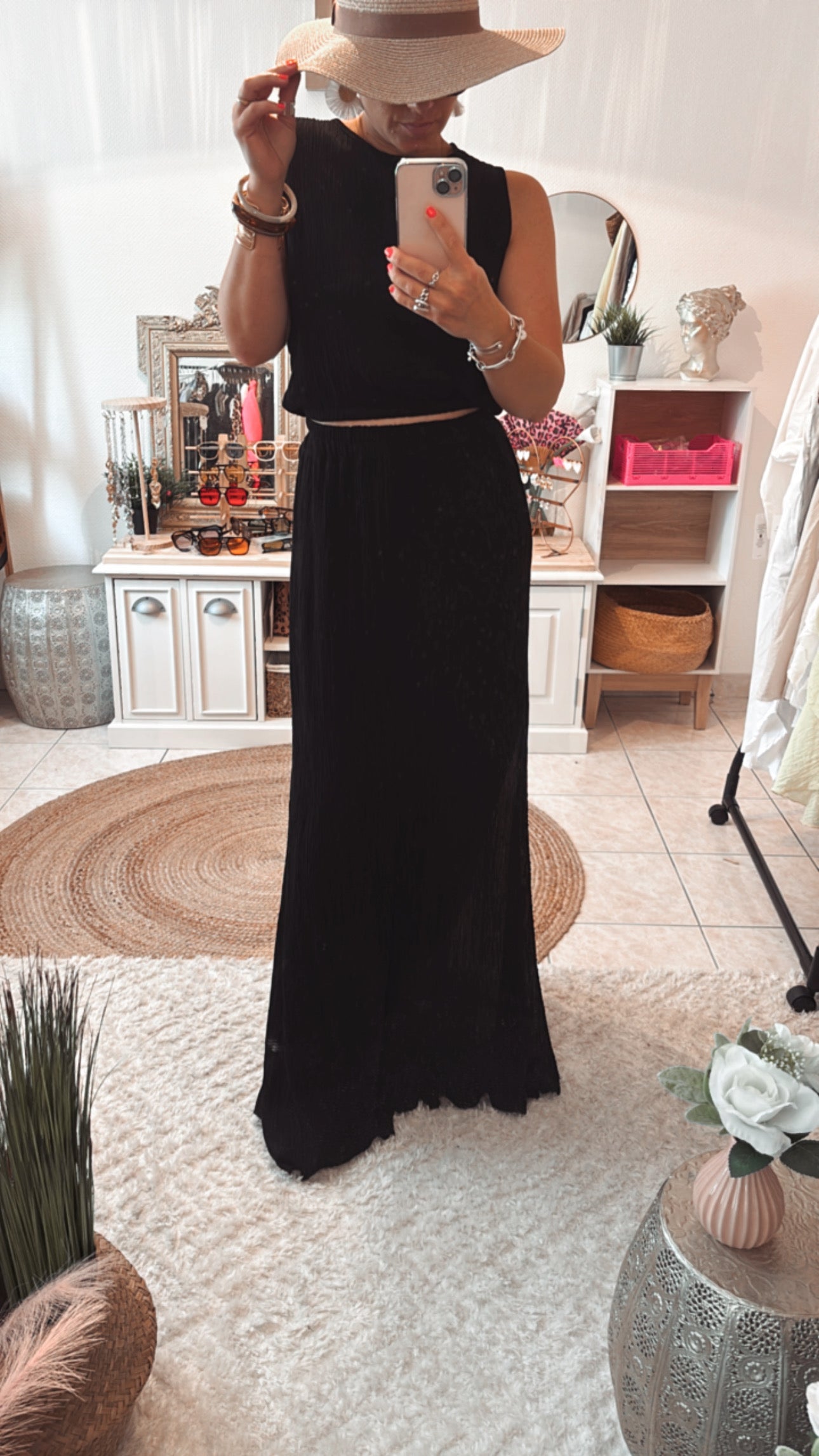 Ensemble top sans manches uni encolure rond et jupe longue avec taille élastique et fente sur le coté -