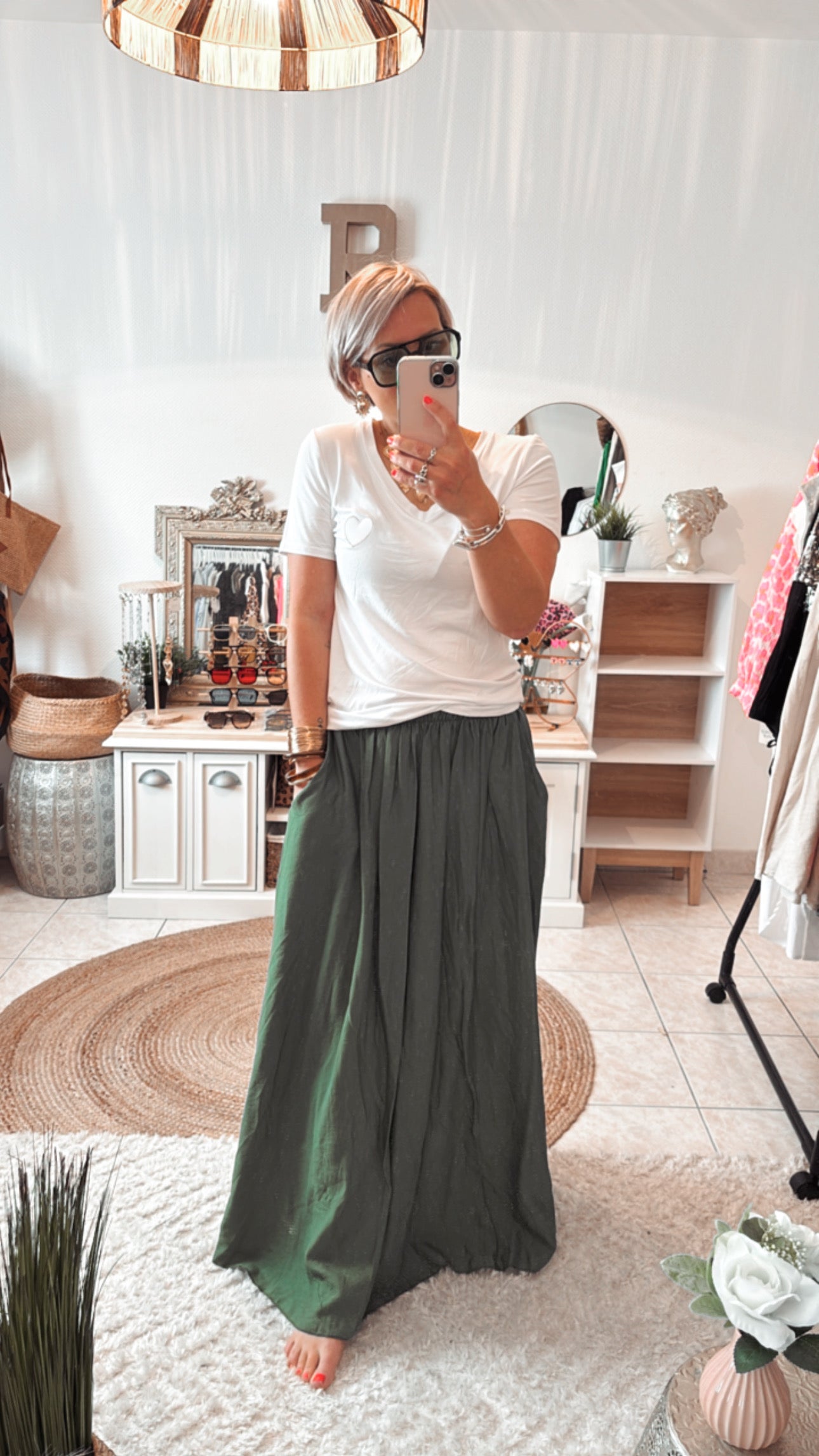 Jupe longue fluide avec poches en viscose souple (viscose de lin ) , taille élastique , idéal pour l'été