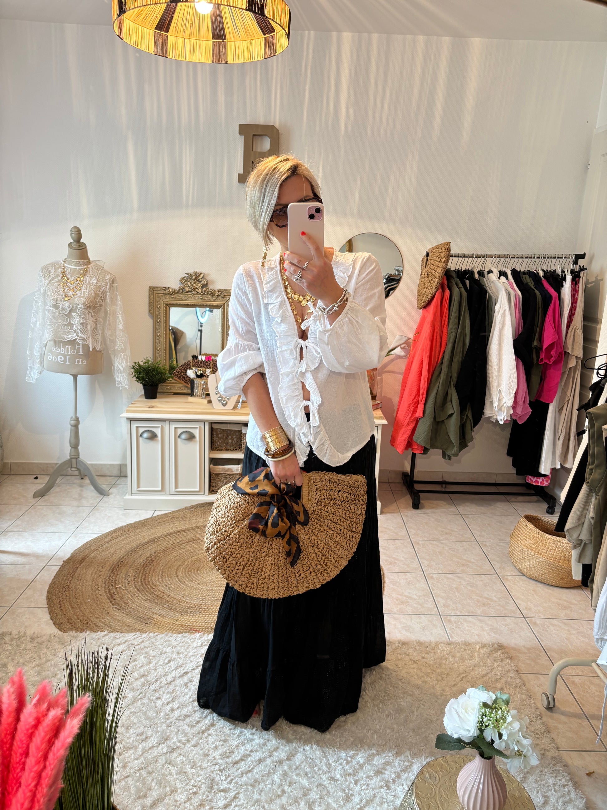 Jupe en coton 100% italien, idéale pour le printemps/été 2025, confectionnée en Italie pour une élégance durable.