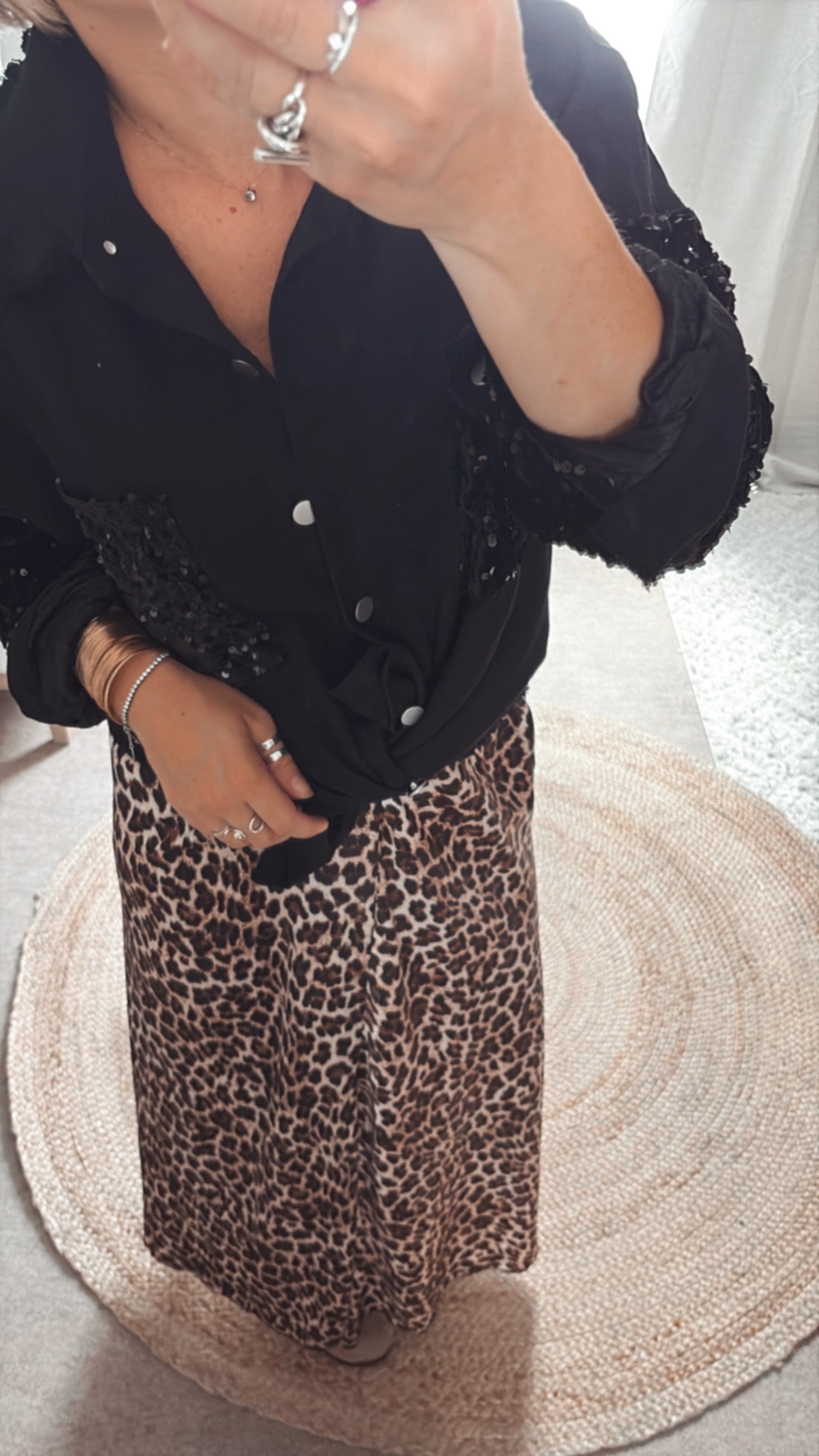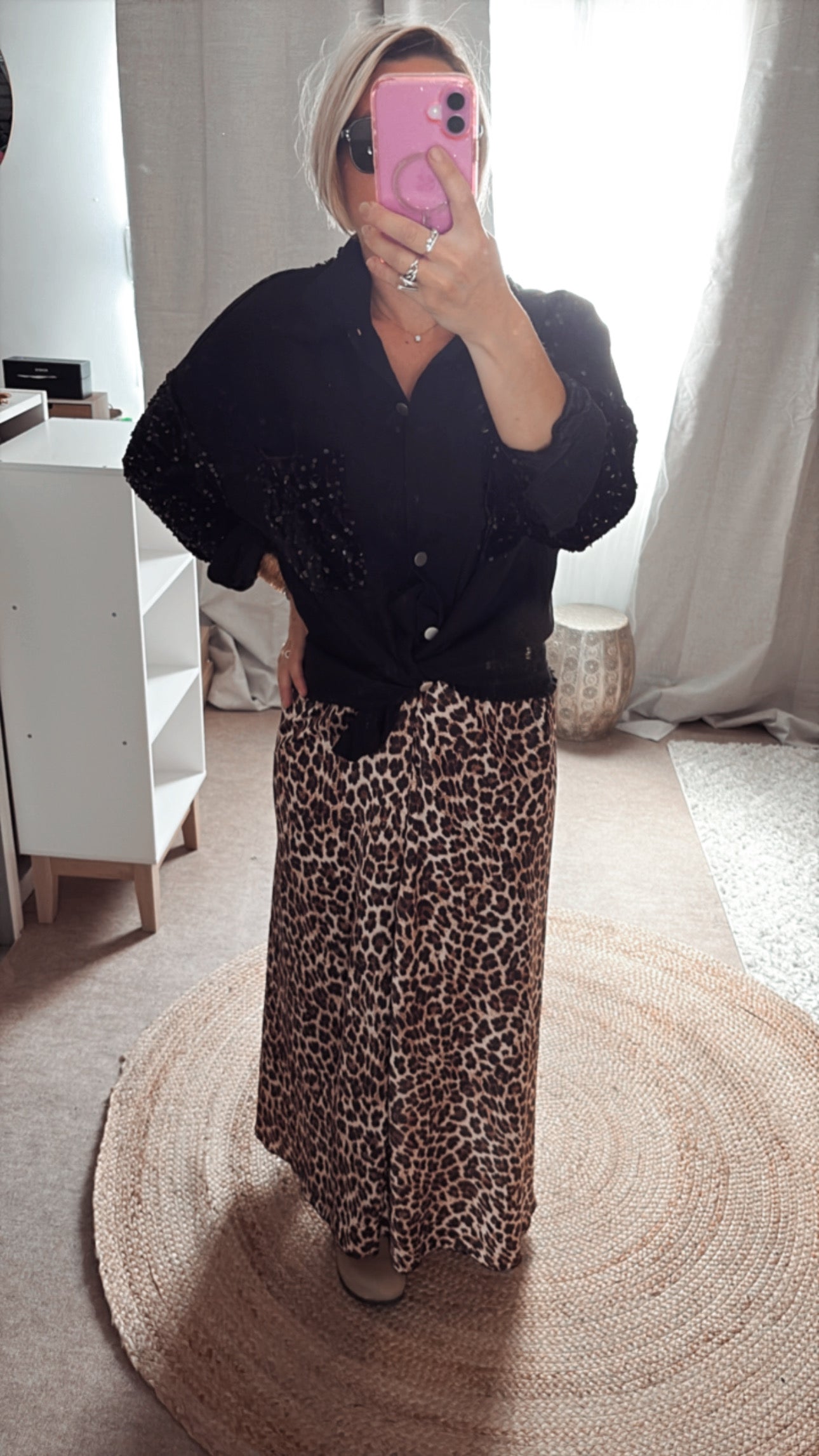 La jupe LEONI est en effet satin imprimé léopard, longueur 1 mètre. Taille unique.