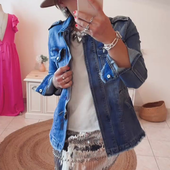Jupe courte à 100% sequins longueur 42cm avec des Perles en métal au tour de la jupe.