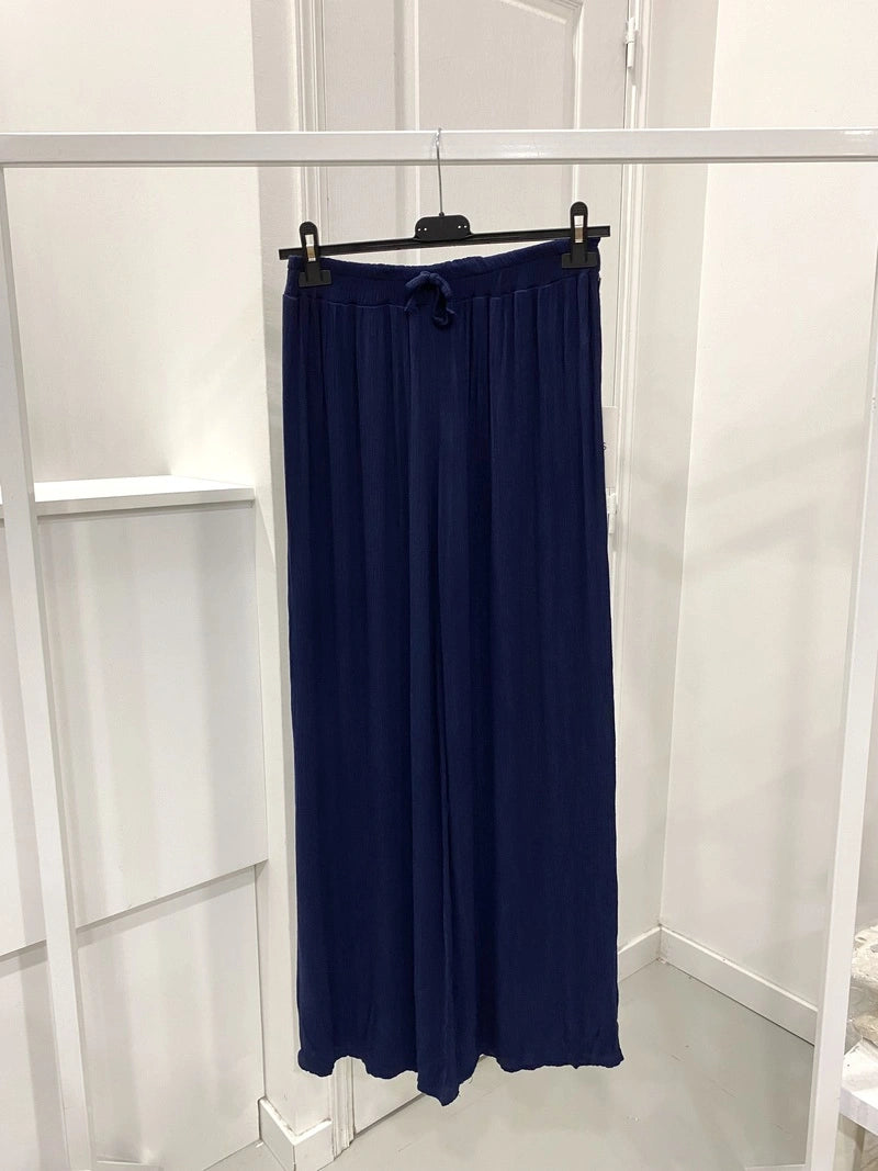 Pantalon large en gaze de viscose, douceur exceptionnelle, idéal pour l'été. Fabriqué en Italie, parfait pour un look décontracté chic.