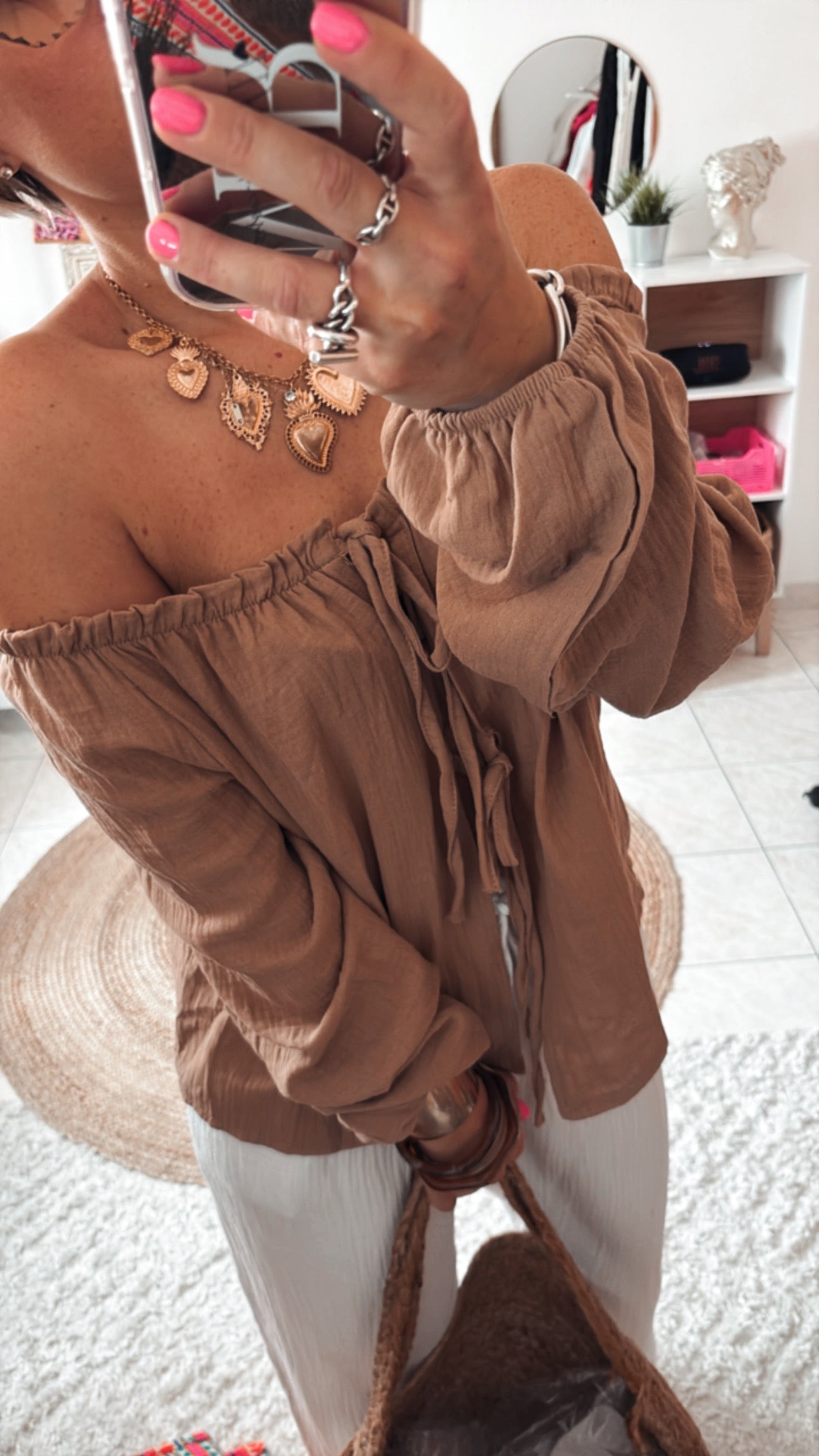 Top épaule dénudée gaze de coton DISPO en PLUSIEURS COULEURS 👇🏼